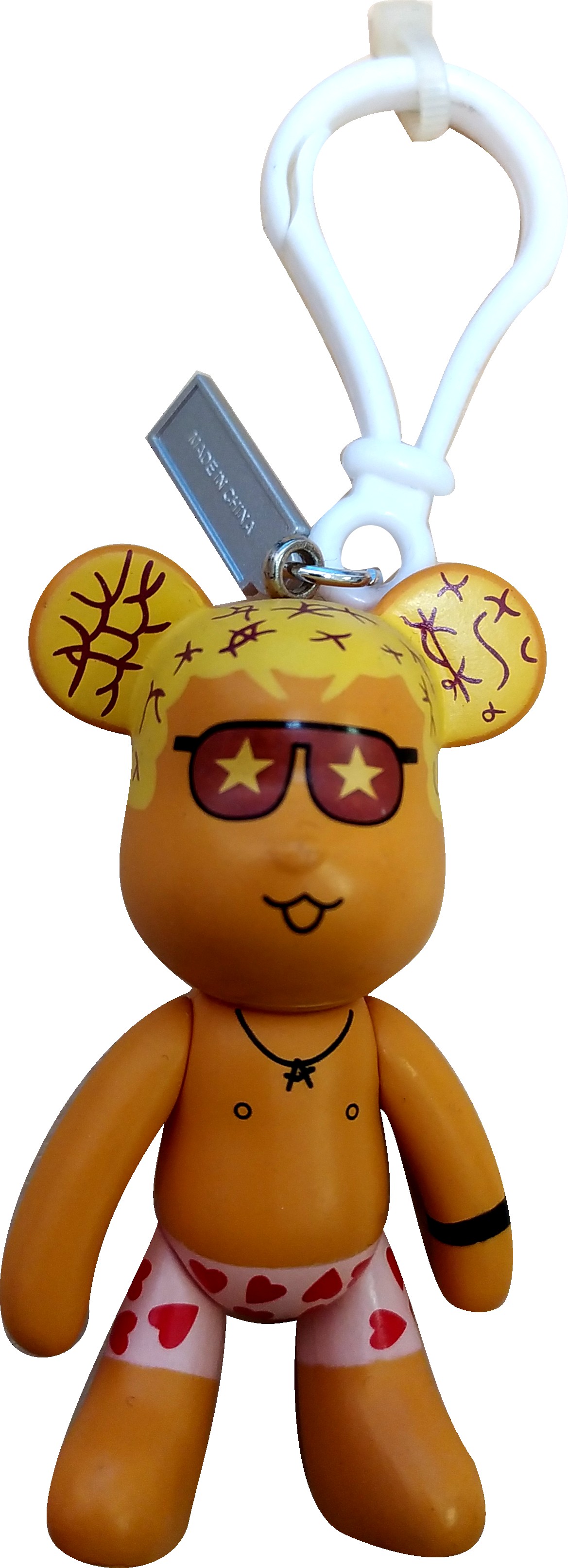 Přívěšek Medvídek Popobe "F" 8cm, barevný plast, pohyblivé končetiny.